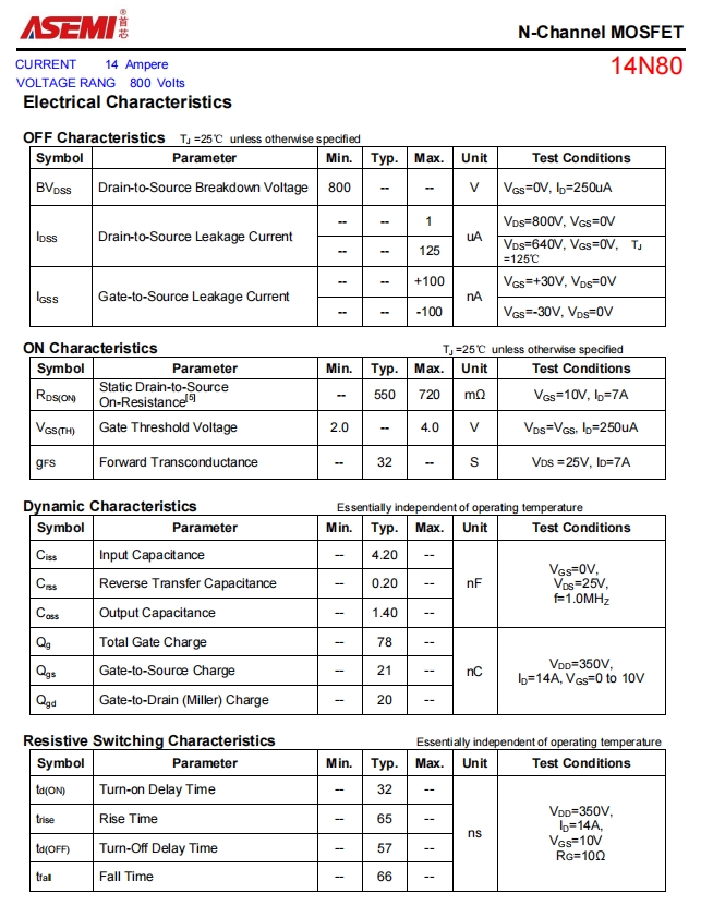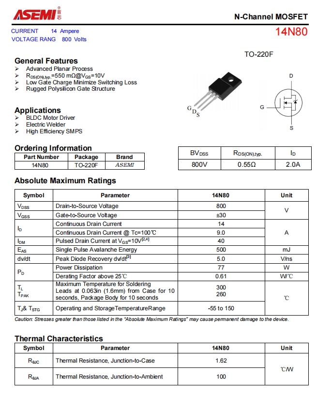 14N80-ASEMI驱动电路专用14N80