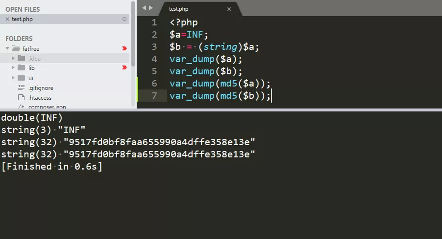 仔细思考,md5函数接收的参数类型是string,会隐式类型转换为string。而松散比较下,一般也是转换为string进行比较,这里就很难产生一个等而另一个不等的情况。