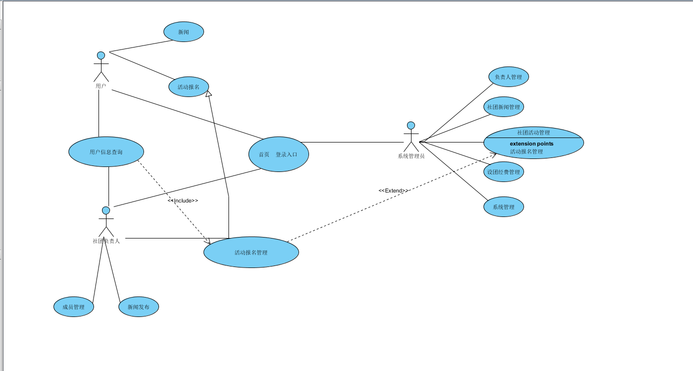 有必要建立一个社团管理系统,使社团的管理工作更加系统规范,信息的处理速度和准确性更高,方便学校管理社团组织、方便社长安排活动,管理人员、方便社员查询,参与活动,有效提升社团的管理水平。 二、主要功能 本系统主要提供了对学生社团的管理平台,在系统中,将管理用户分为了两大类:一类为社团管理层系统管理员,主要用于对各社团的信息的管理,其主要职能有:规划社团发展与建设,成立、注册、撤销、恢复社团信息等,审核社团活动,评定学分成绩,对社团进行评优;另一类为社团事务的管理,主要实现对本社团的管理,如社团活动管理、成员信息管理、评优管理、社团新闻管理等