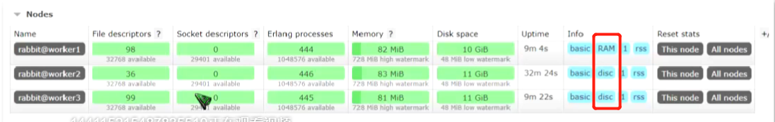 --ram 表示以Ram节点加入集群。disk节点会将元数据保存到硬盘当中,而ram节点只是在内存中保存元数据。