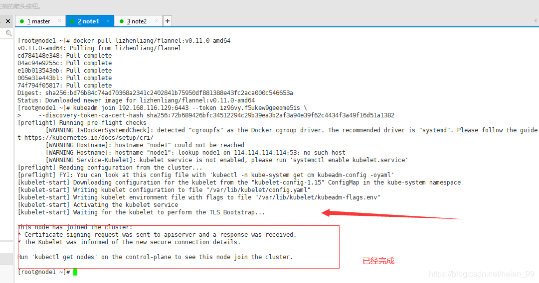 添加一下node2,命令如上。切记,先执行在node上安装flannel