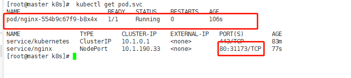 在Kubernetes集群中创建一个pod,验证是否正常运行: