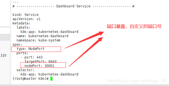 默认Dashboard只能集群内部访问,修改Service为NodePort类型,暴露到外部: