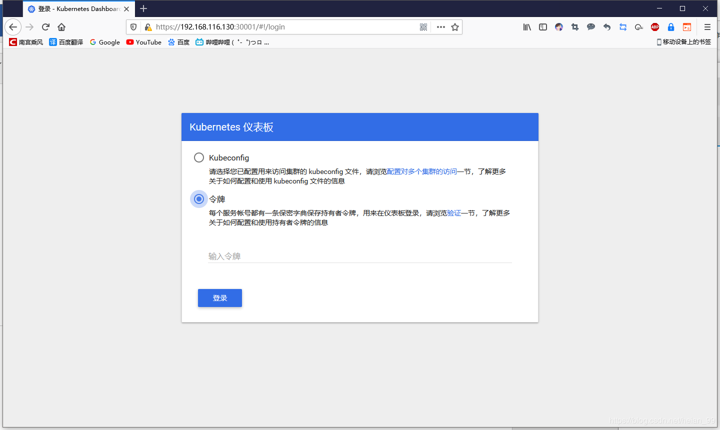 访问地址:https://NodeIP:30001 【必须是https】