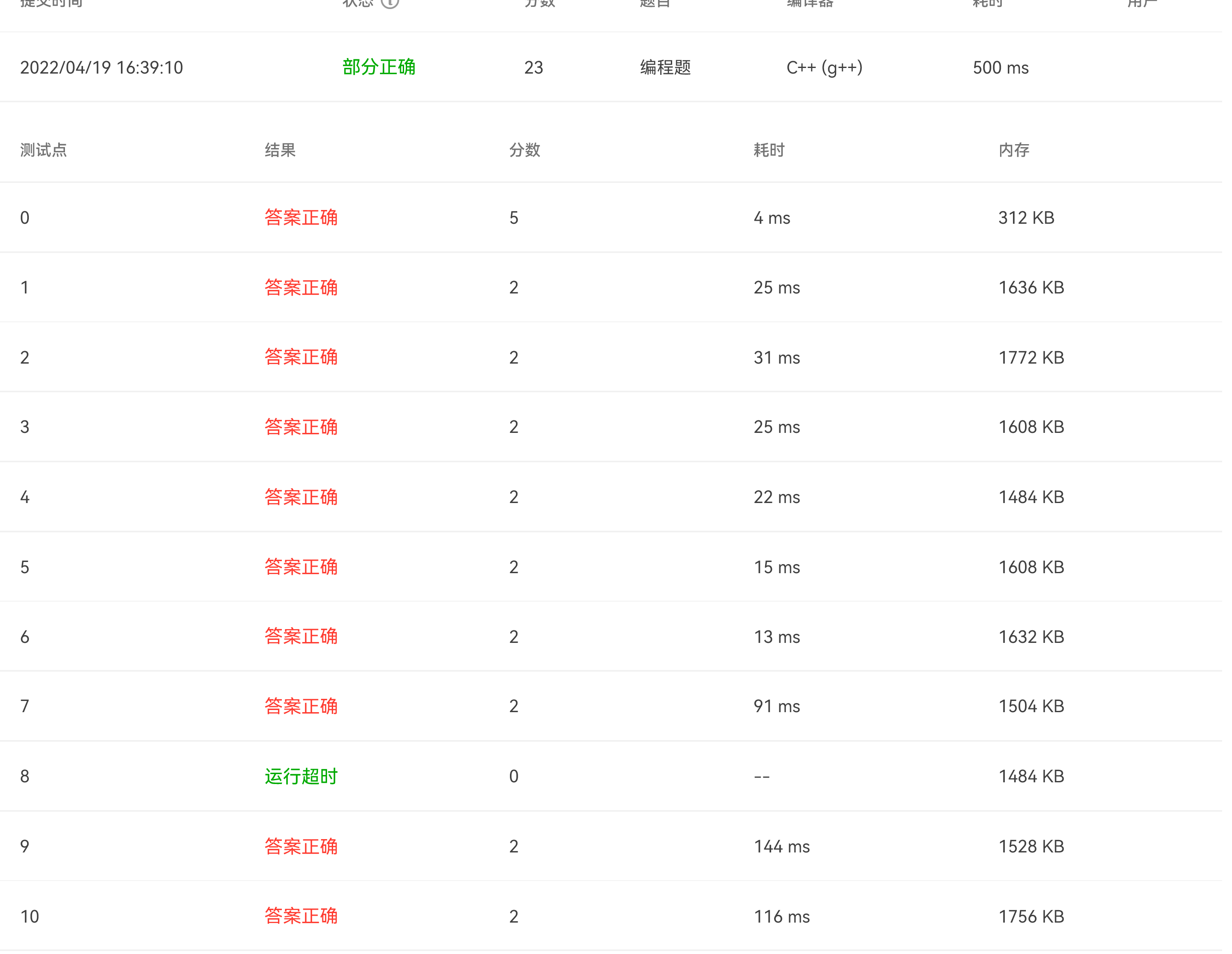 注释:此代码有一个样例超时,但对于不会KMP算法但又想拿高分的朋友特别友好,旨在以最少的代码最核心的思想拿最高的分