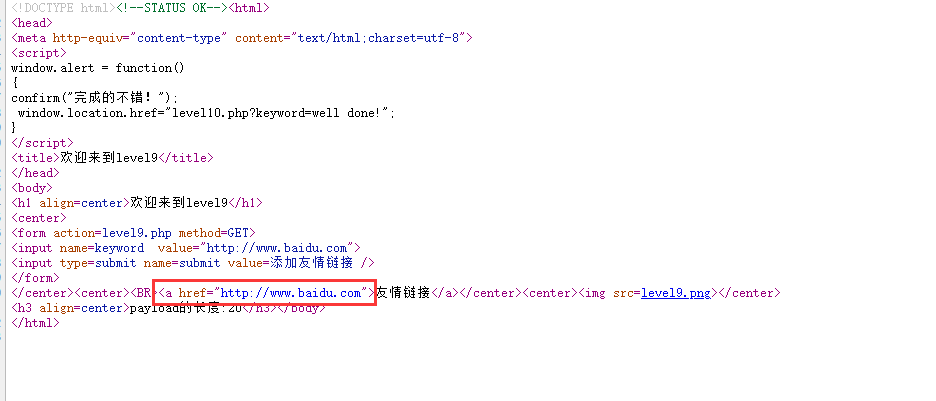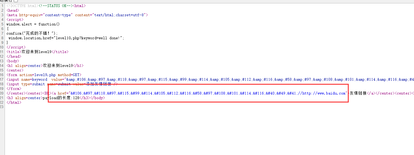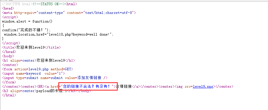 总结:第九关需要在前面unicode过滤的基础上加上http://语句才能绕过函数完成xss攻击。