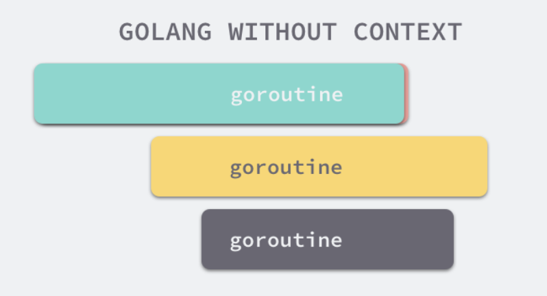 每一个 Context 都会从最顶层的 Goroutine 一层一层传递到最下层,这也是 Golang 中上下文最常见的使用方式,如果没有 Context,当上层执行的操作出现错误时,下层其实不会收到错误而是会继续执行下去。