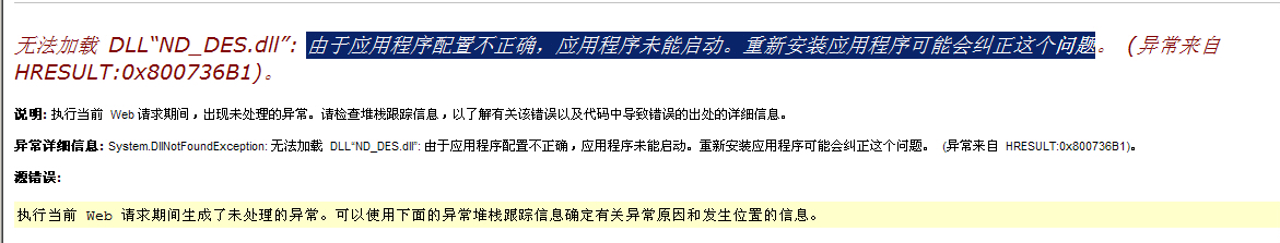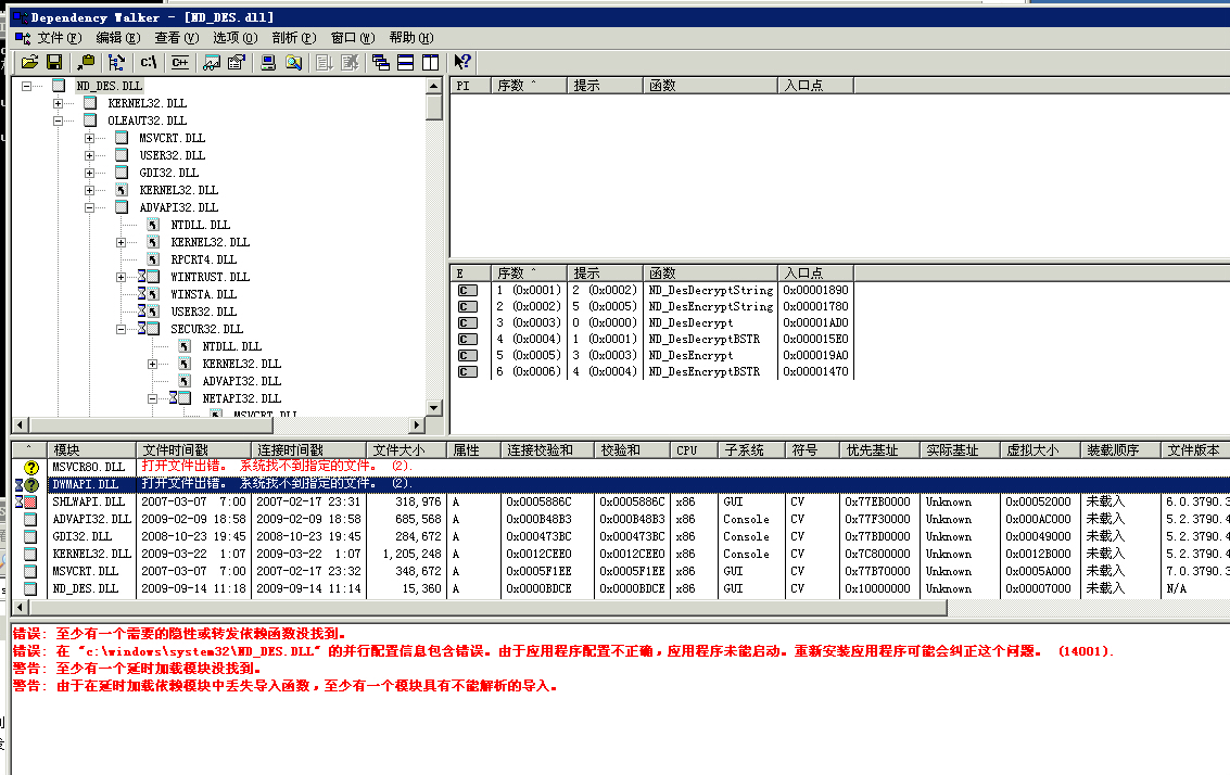 后来用 depends.exe 工具排查问题, 详细信息如下: