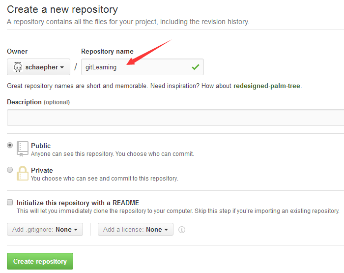 点击 Create repository 就创建好了。其他选项可以暂时不管。