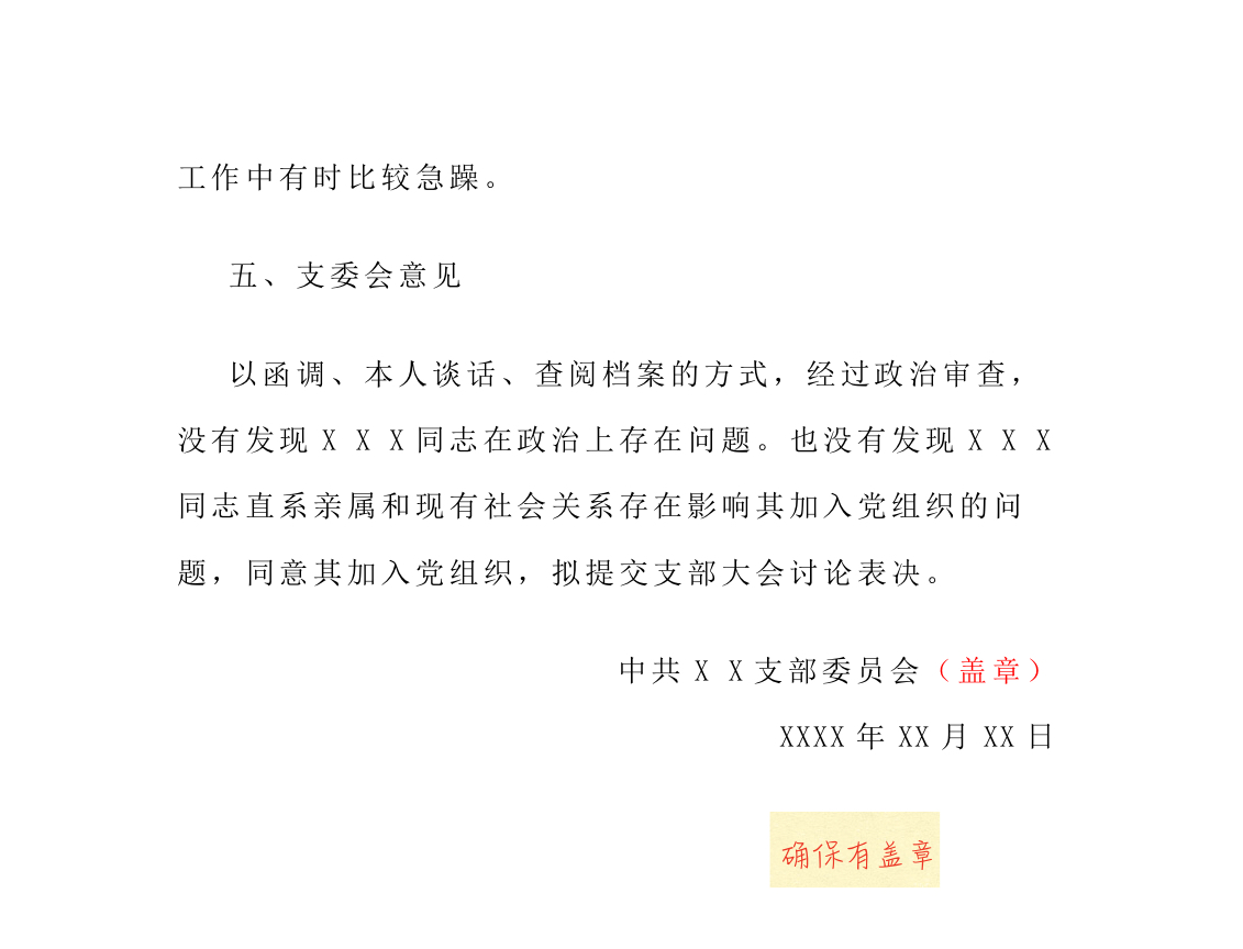 发展转正部材料审核模板