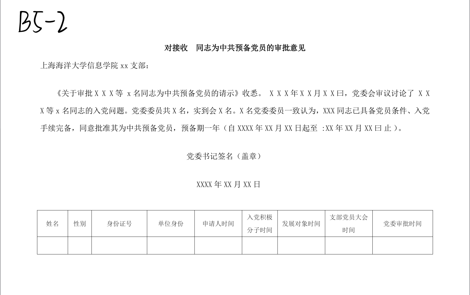 有关备案报告、请示、批复类文件都需要将每一个表项(学号、姓名、相关时间点、其他)检查核对好,保证准确。其中,备案报告和请示的落款需要有支部书记签名,批复的落款需要有盖章。