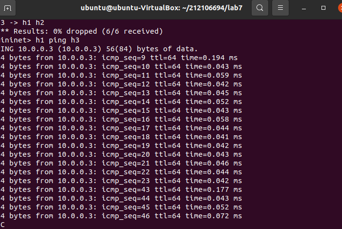 (3) 下发硬超时流表,实现拓扑内主机h1和h3网络中断20s。