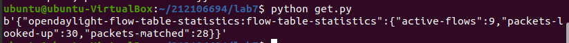 #!/usr/bin/python import requests from requests.auth import HTTPBasicAuth if __name__ == "__main__": url = 'http://127.0.0.1:8181/restconf/operational/opendaylight-inventory:nodes/node/openflow:1/flow-node-inventory:table/0/opendaylight-flow-table-statistics:flow-table-statistics' headers = {'Content-Type': 'application/json'} res = requests.get(url,headers=headers, auth=HTTPBasicAuth('admin', 'admin')) print (res.content)