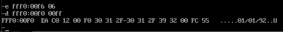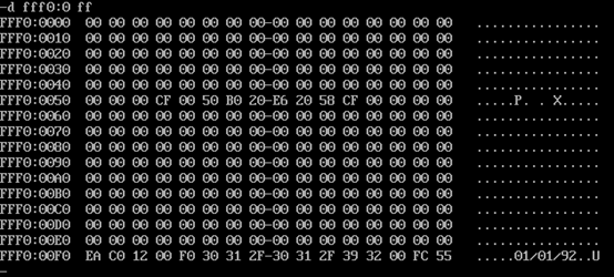 ①使用d命令查看从FFF00H~FFFFFH的内存单元中的内容: