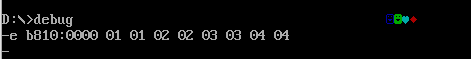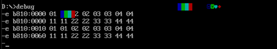 ①输入-e B810:0000 01 01 02 02 03 03 04 04,显示图像如下: