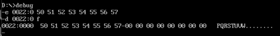 ① 截图记录:使用 e 命令修改 内存单元0022:0~0022:f 中的数据,及修改后查看是否正确
