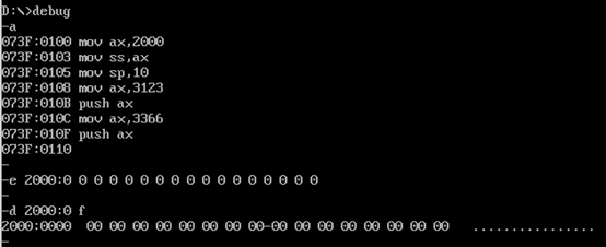 同时因为将cs:ip进行了入栈操作,所以栈2000:0-2000:f中的内容会发生变化。