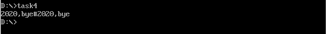 汇编、链接、运行程序,输入一个字符串并以#结束(比如,2020, bye#)观察运行结果。