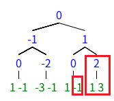于是,我们的求解就变成了,在树上跑的过程中,每次扔掉东西的时候,直接减去其子树的树叶部分。对于\(12\)的情况,就是以\(a[0][4]\)的总体(图中所有点构成的满二叉树),先减掉\((a[2][2]-a[2][1])\)(大红框的叶子),再减掉\((a[1][1]-a[1][0])\)(小红框的叶子)。