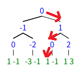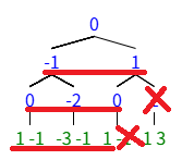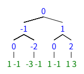 如:第二层有两个1,由于每个数固定产生一个+1的儿子,一个-1的儿子,两个1就产生两个0和两个2.由此可继续推下一层。其中0稍显特殊,加一减一都为1。