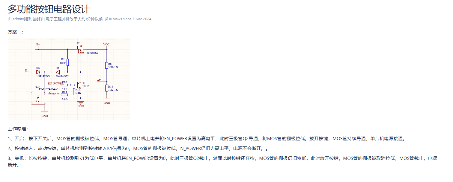 多功能按键电路设计(电源开启,电源断开,按键输入):