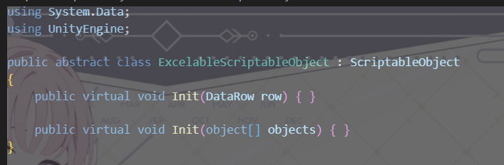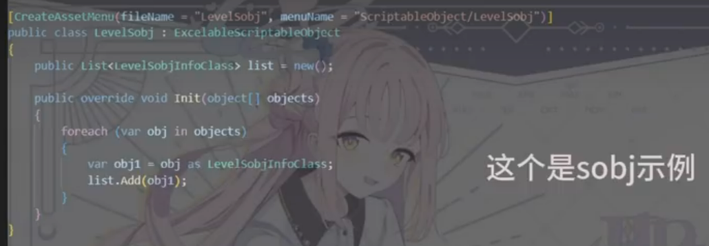 ExcelableScriptableObject.cs为抽象类,作用是为sobj进行里氏替换后提供Init虚函数