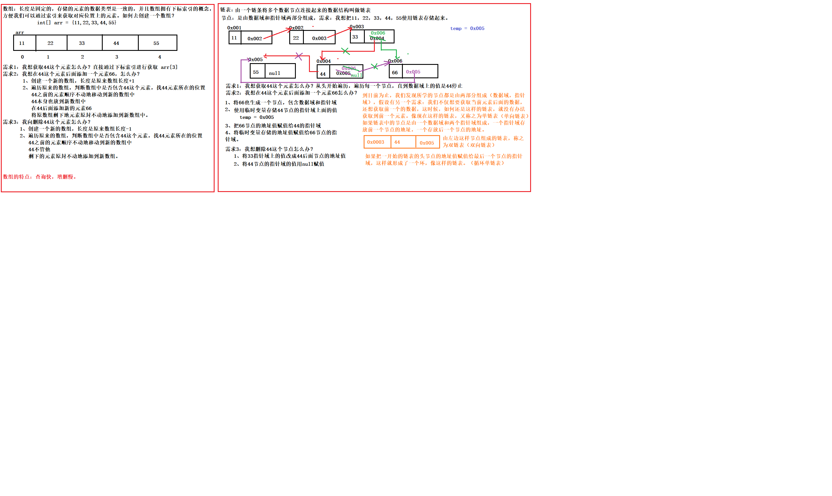 - 链表可在任意可供使用的内存空间中去存储数据,这也造成了它的缺点。查找元素麻烦,如果要查找链表中的一个元素,需要从第一个元素开始,依次往下,直到找到需要的元素位置