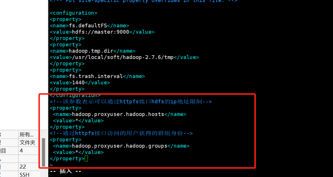修改hadoop中的配置文件 core-site.xml 直接改,改完重启就行,为后面beeline连接做准备