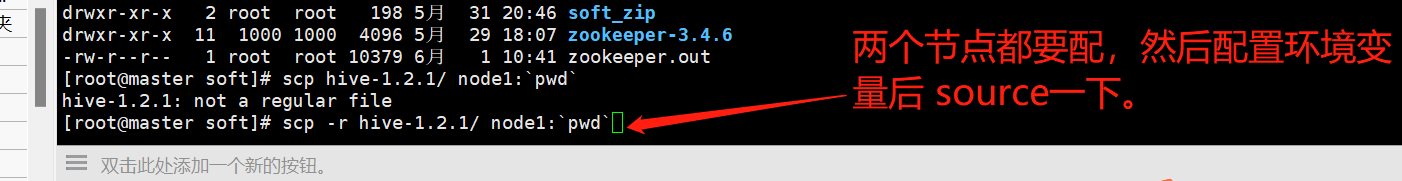 1.3.9 拷贝到其他两个节点中去,因为可能我们会在其他的节点上当作客户端访问hive,注意,也需要配置环境变量,增加驱动jar包,将hadoop的jline-0.9.94.jar的jar替换成hive的版本