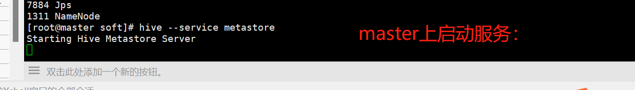 服务端启动metastore服务(后台启动):nohup hive --service metastore > /usr/local/soft/mylogs 2>&1 &