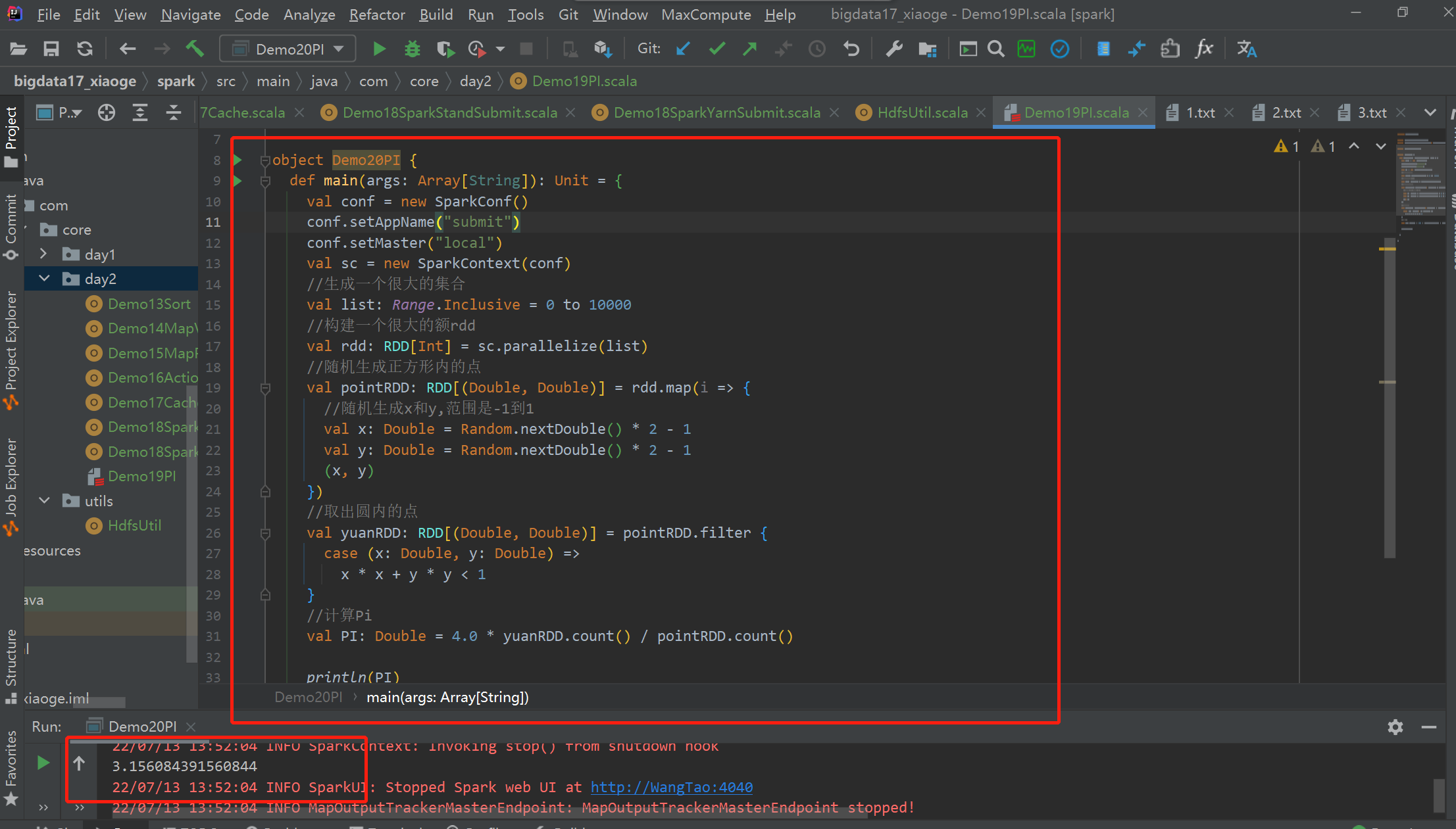 val PI: Double = 4.0 * yuanRDD.count() / pointRDD.count()