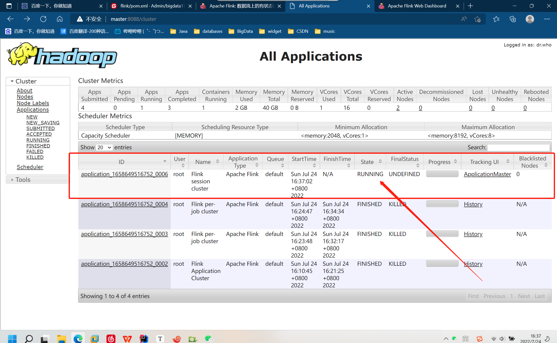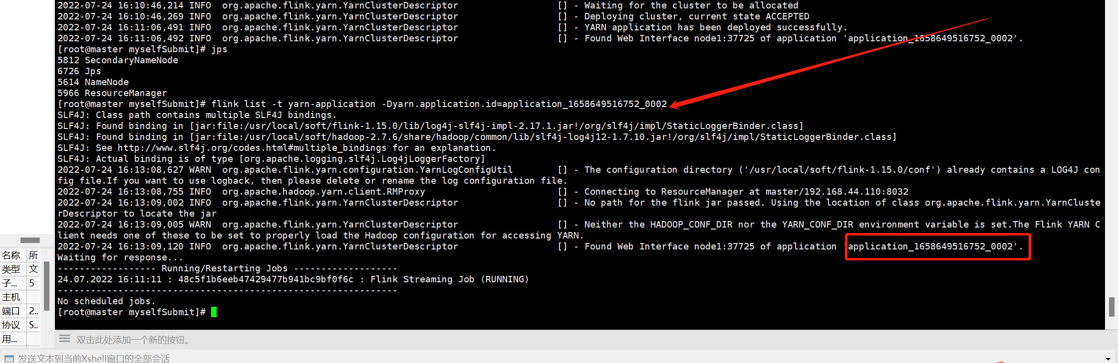 flink list -t yarn-application -Dyarn.application.id=application_1654846044068_0002