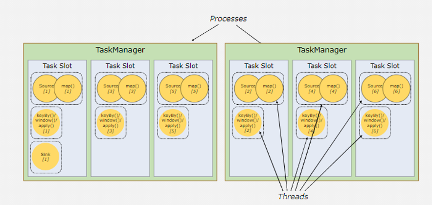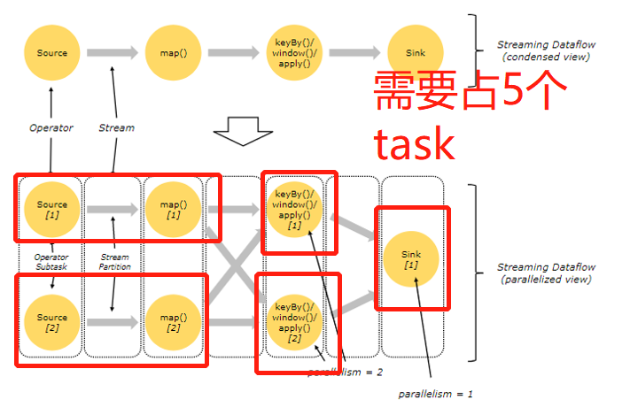 * flink 任务需要申请的资源和并行度有关,和task的数量没有关系