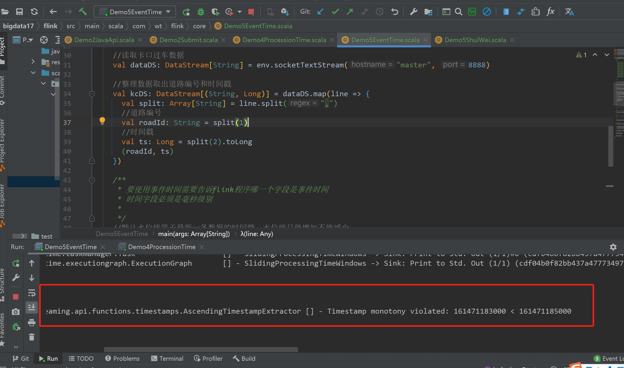 * 要使用事件时间需要告诉flink程序哪一个字段是事件时间