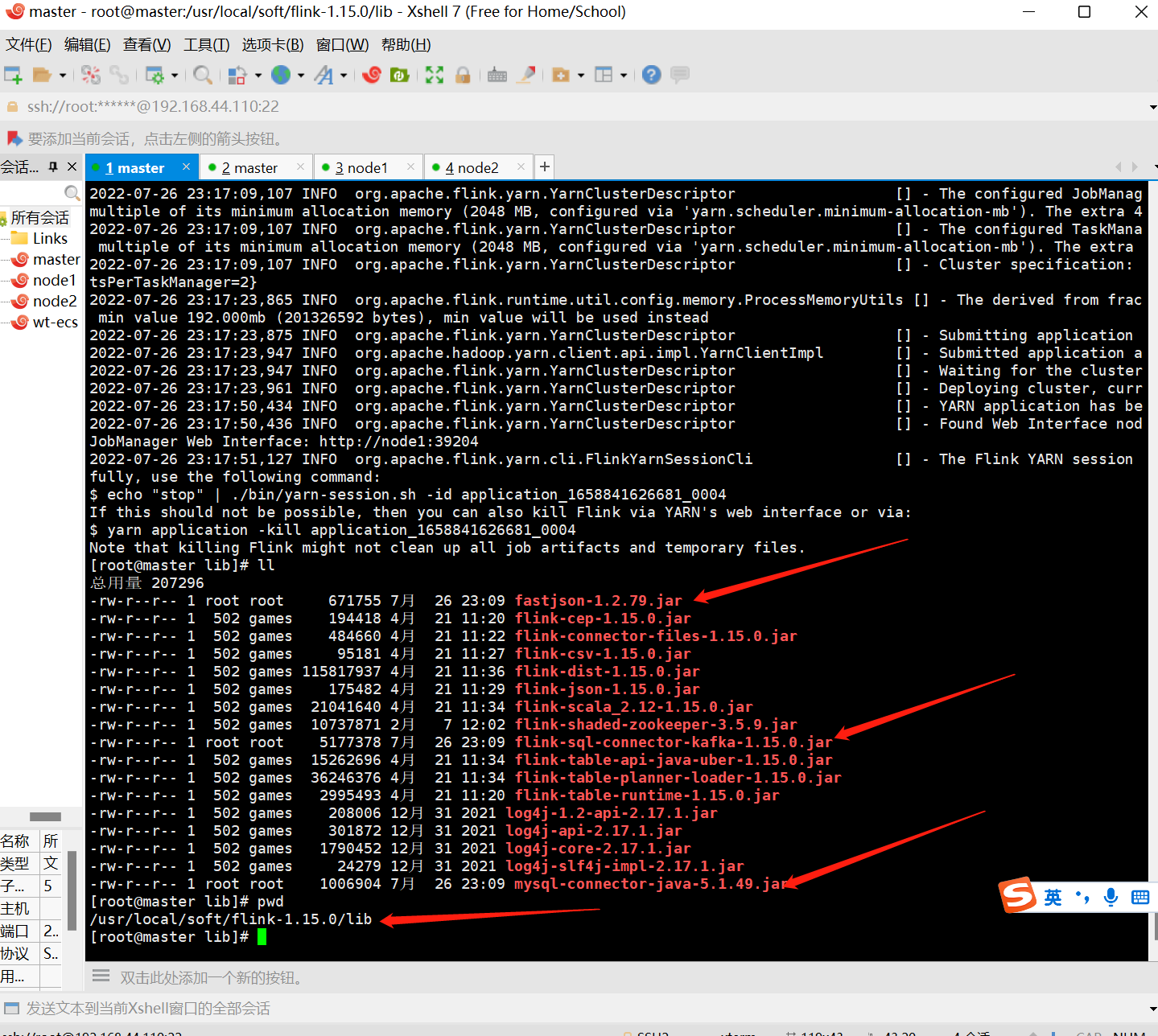将mysql的依赖上传到flink的lib目录下
