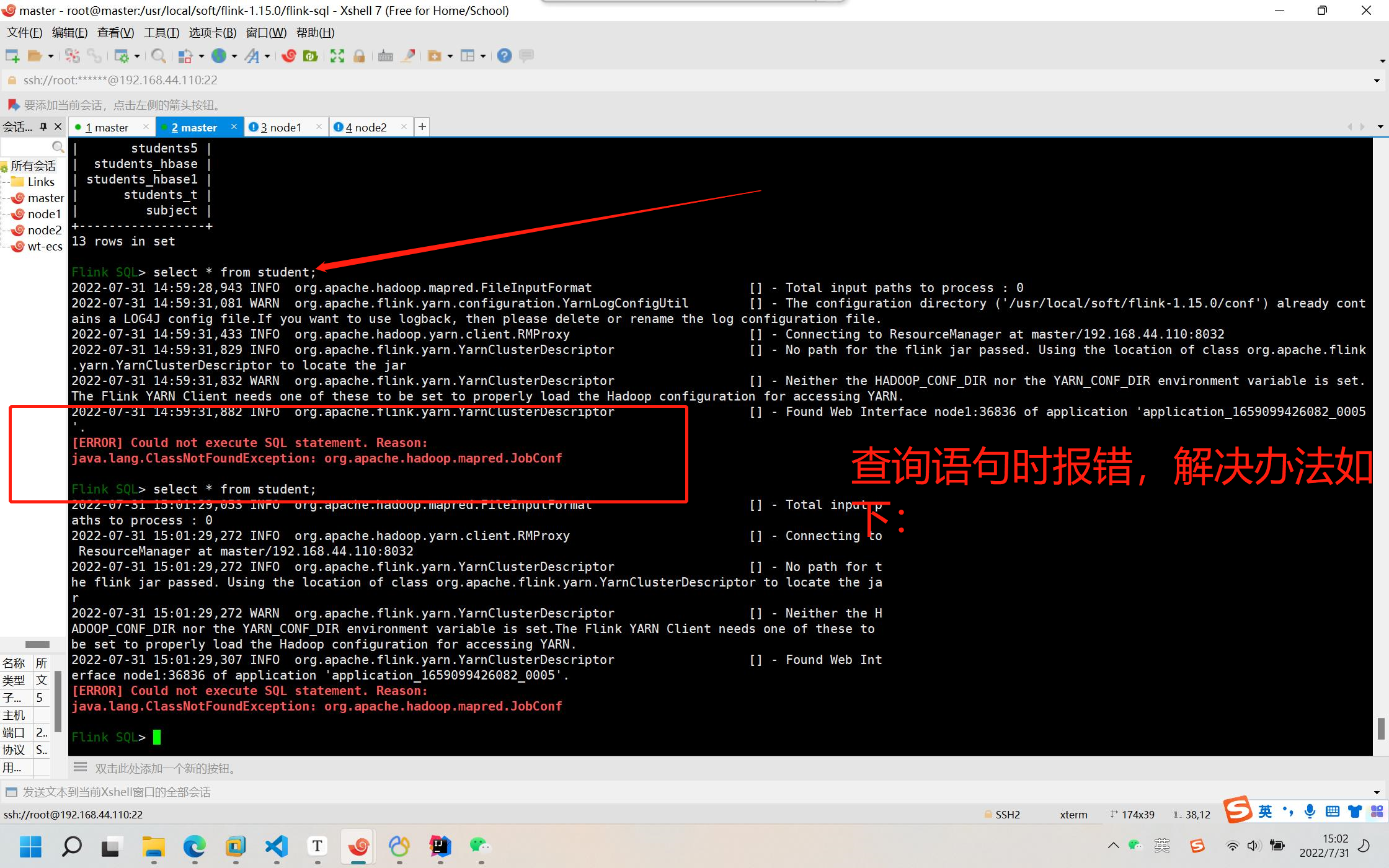 将flink-sql-connector-hive-1.2.2_2.12-1.15.0.jar依赖包上传到flink的lib目录下