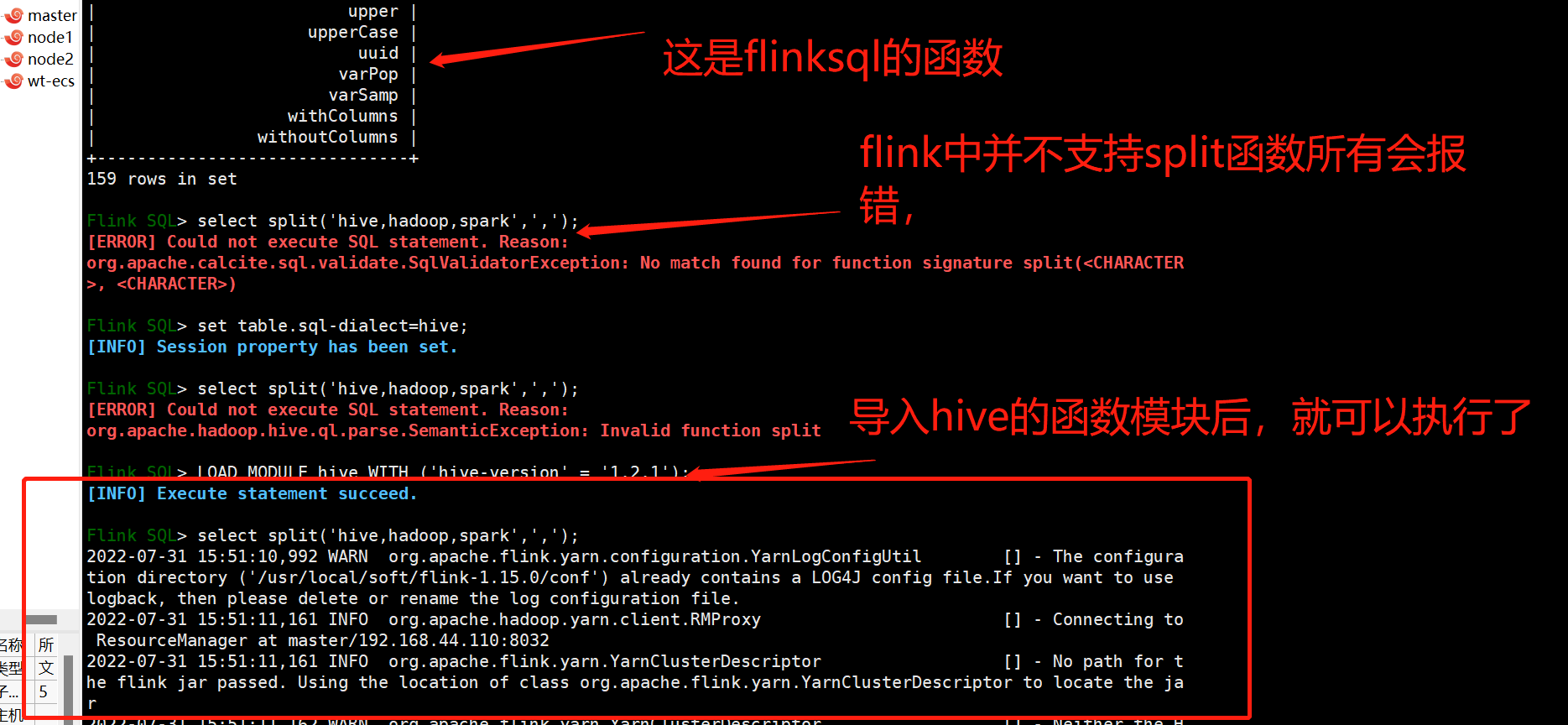 -- 开启hive的方言之后就不能使用flink自己的语法了