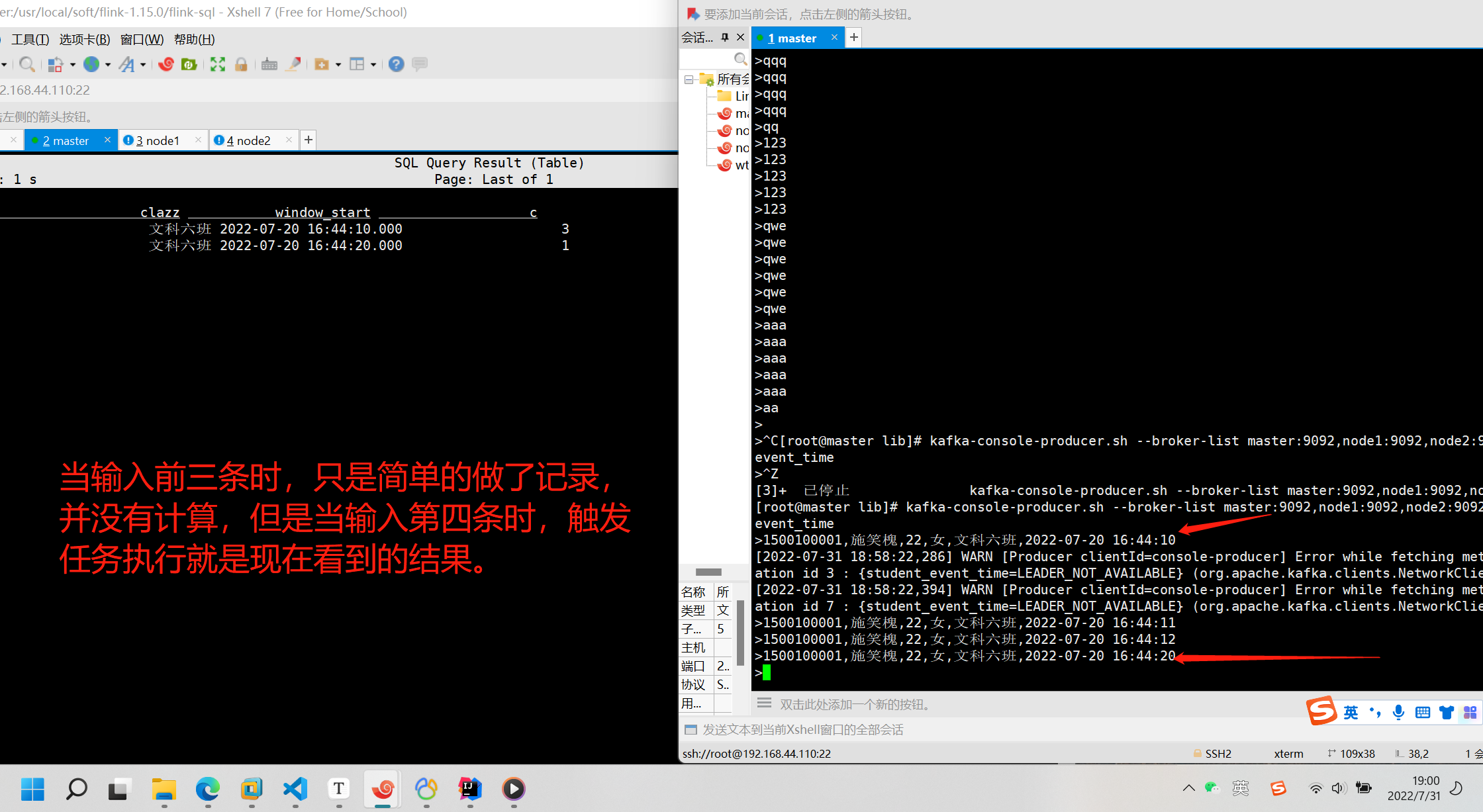 SESSION(proc_time, INTERVAL '5' SECOND) -- 会话超过5秒中没有发送消息,就开始进行计算