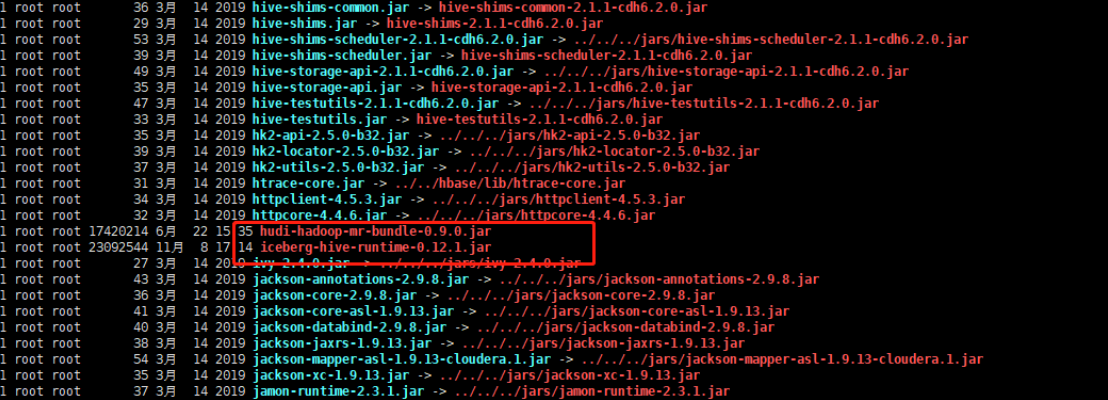 hive> add jar /opt/cloudera/parcels/CDH/lib/hive/lib/iceberg-hive-runtime-0.12.1.jar;