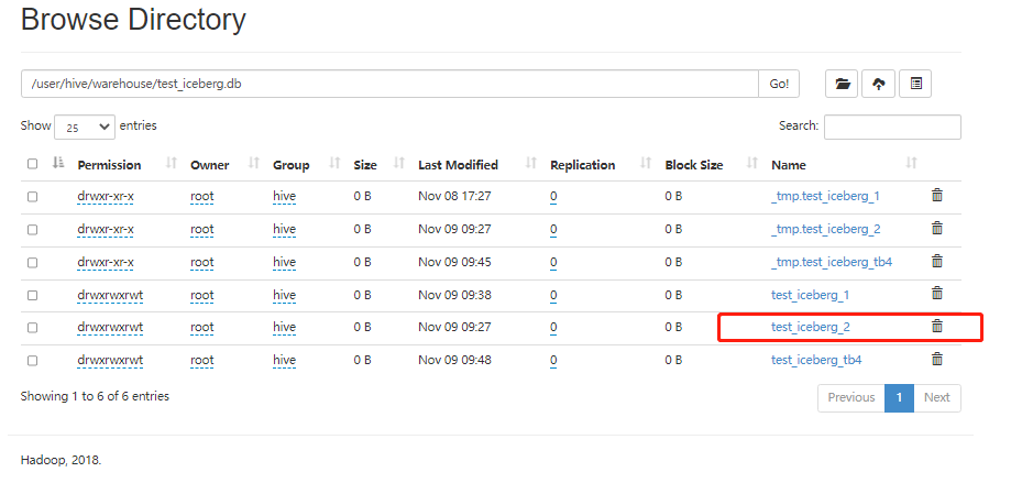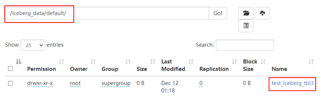 注意:以上location指定的路径必须是“iceberg.catalog.hadoop.warehouse”指定路径的子路径,格式必须是${iceberg.catalog.hadoop.warehouse}/${当前建表使用的hive库}/${创建的当前iceberg表名}
