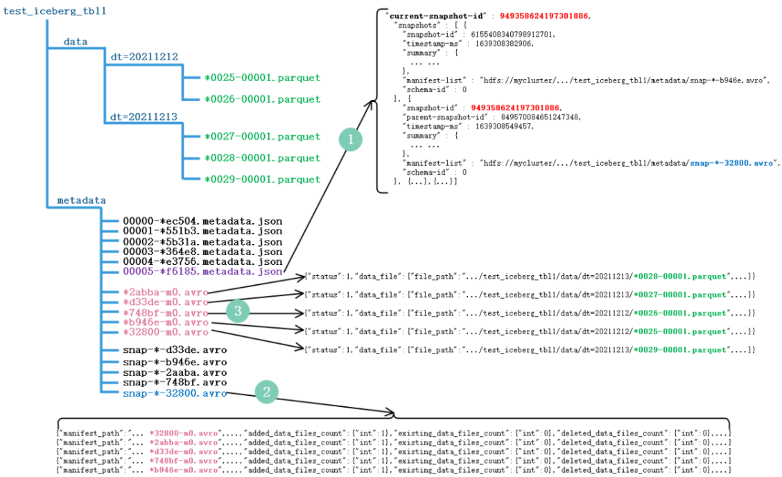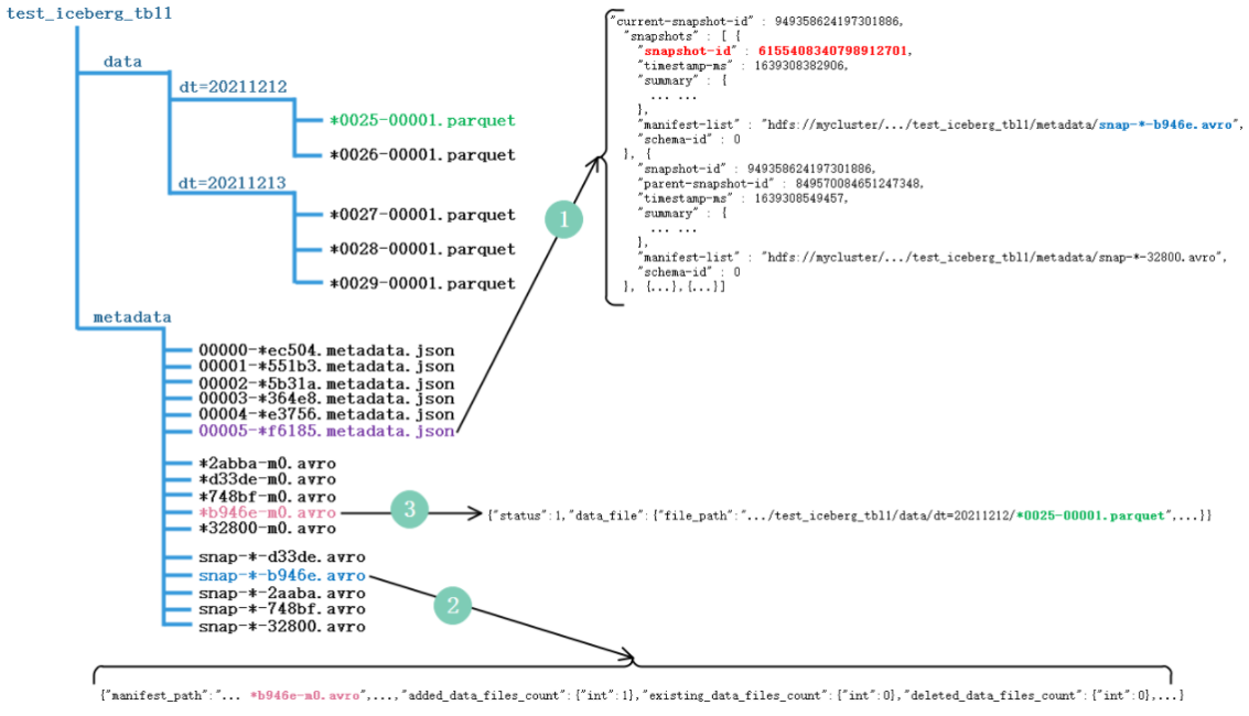 下图为Iceberg表“test_iceberg_tbl1”在HDFS中存储的数据组织图: