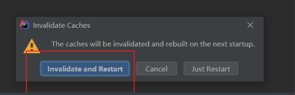 3.直接Invalidate and Restart,当清理缓存重启IDEA后,我们进入Setting