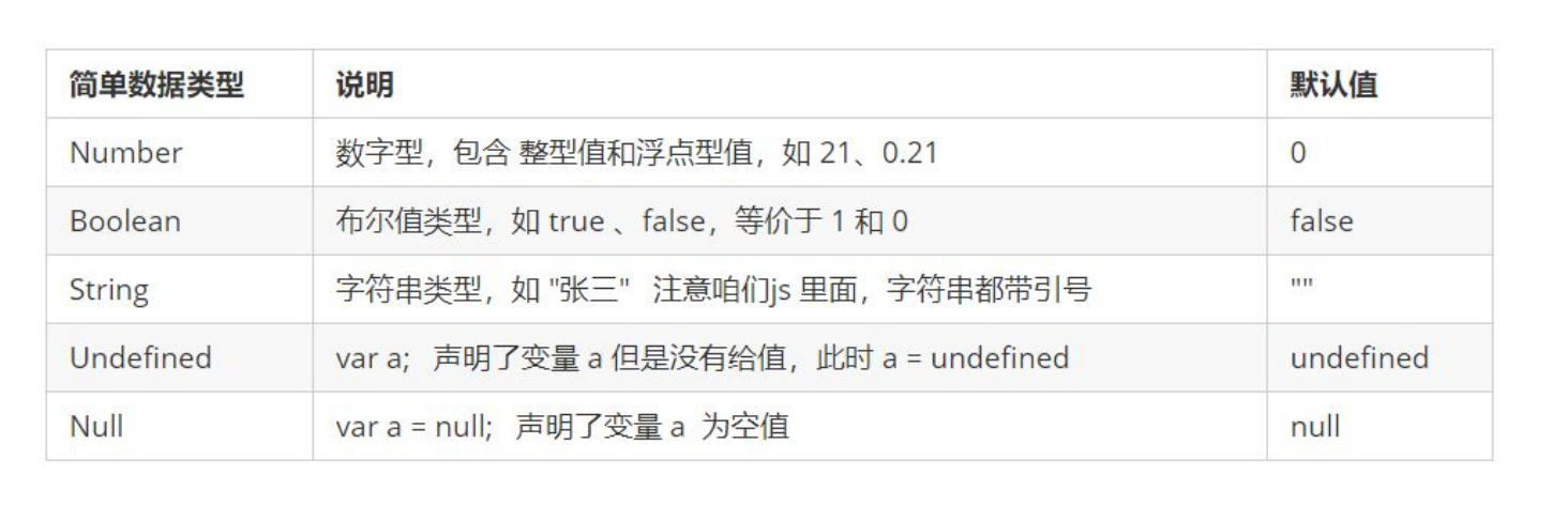 - 简单数据类型 (Number,String,Boolean,Undefined,Null)