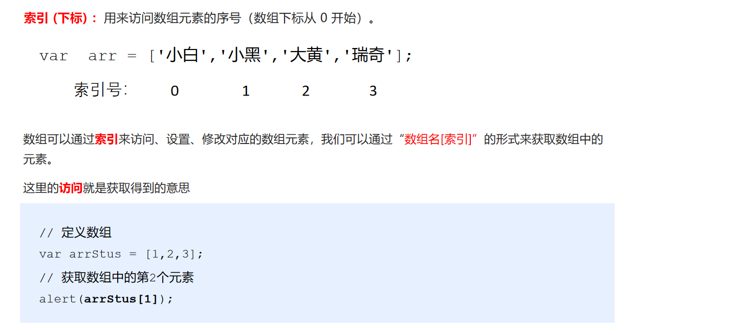 // 1. 因为我们的数组索引号从0开始 ,所以 i 必须从 0开始 i < 3