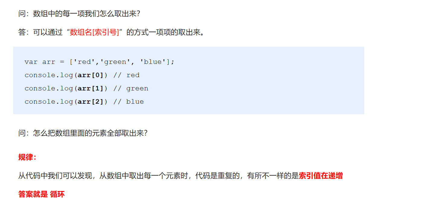 // 2. 输出的时候 arr[i] i 计数器当索引号来用