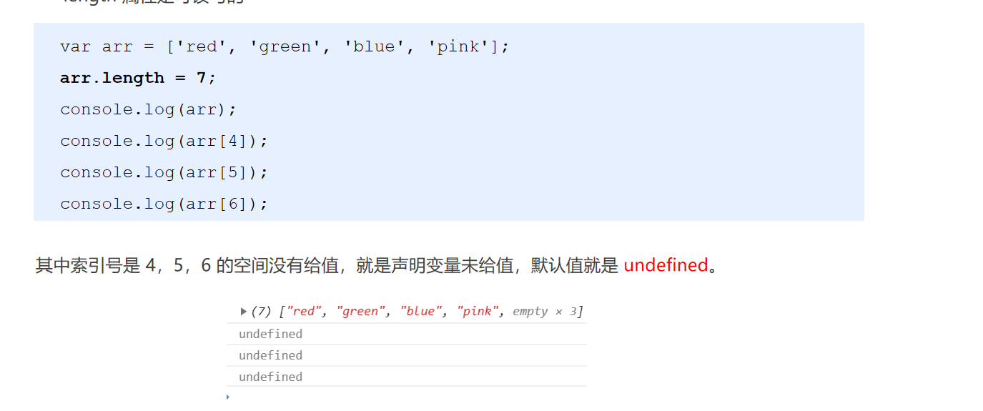 arr.length = 5; // 把我们数组的长度修改为了 5 里面应该有5个元素