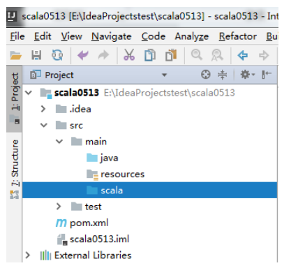 右键点击 scala 目录->Mark Directory as->选择 Sources root,观察文件夹颜色发生变化。