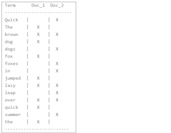 传统的数据库每个字段存储单个值,但这对全文检索并不够。文本字段中的每个单词需要被搜索,对数据库意味着需要单个字段有索引多值的能力。最好的支持是一个字段多个值需求的数据结构是倒排索引。