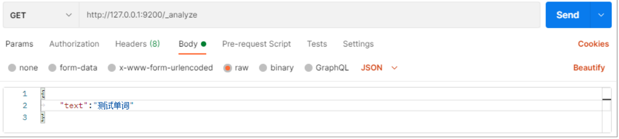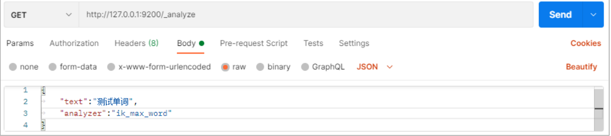 首先我们通过 Postman 发送 GET 请求查询分词效果