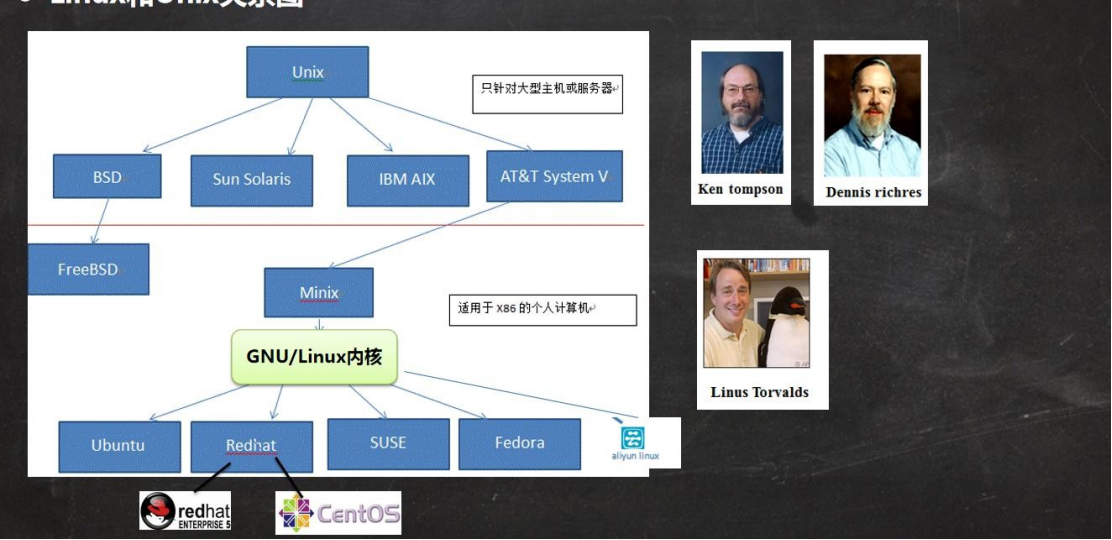 Ubuntu(乌班图)、RedHat(红帽)、CentOS、Debain[蝶变]、Fedora、SuSE、OpenSUSE [示意图]